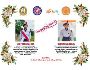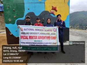 As part of the programme of National Social Service, the NSS (National Service Scheme) unit of the Kokrajhar University (upgraded from Kokrajhar Govt. College) was established in 1971. By this time the unit has launched many developmental projects and successfully executed them for the development of roads and communications in the interior places of the district. With a mission to render Social Services students are welcome to join NSS.